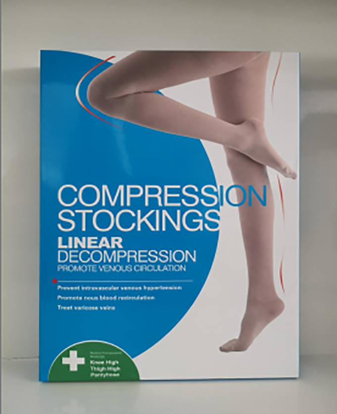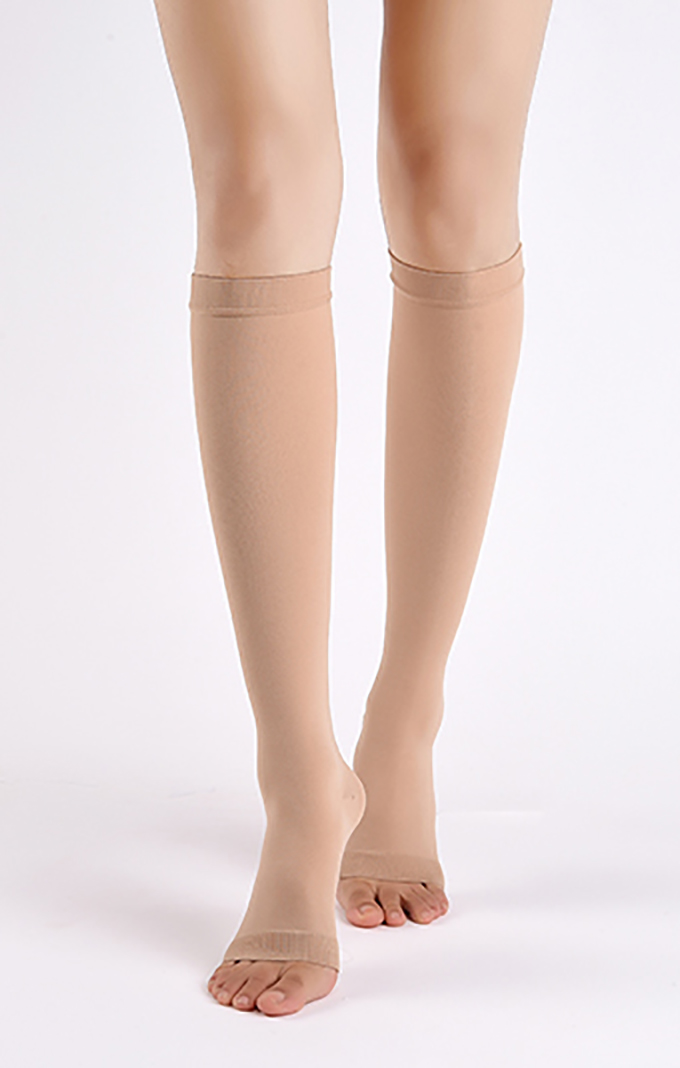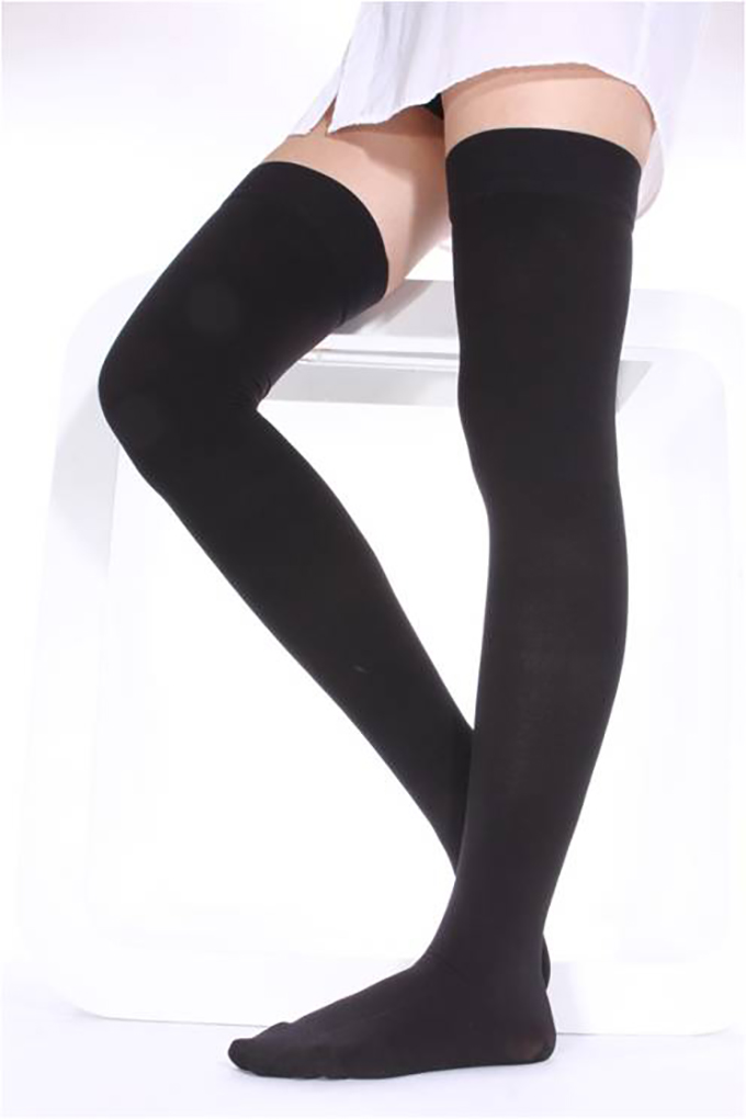 * This stocking promotes blood flow back from the legs to the heart. Prevents blood stagnation in the legs, which is the main cause of varicose veins. Applying high pressure at the ankles, medium pressure at the knees and minimal pressure at the thighs.